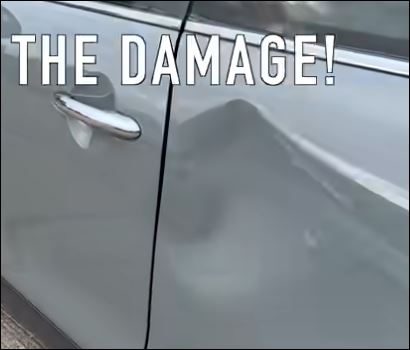 Left Rear panel on a Mini from a truck tire that got loose while getting winter tires down off a garage shelf. The Process